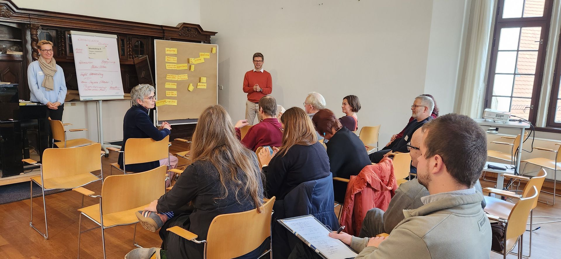 Am Nachmittag konnten die Teilnehmenden zwischen vier parallel stattfindenden Workshops mit unterschiedlichen Themen wählen: Die Bandbreite reichte von kreativen Methoden des Design Thinking mit Dr. Kai Pagenkopf über digitale Stadtführungen mit Augmented Reality, vermittelt von Viktor Waal von SpotAR, bis hin zum Einsatz von Virtual-Reality-Elementen, vorgestellt von Sebastian Tusk von BreakpointOne, oder der Entwicklung eines neuen touristischen Leitbilds für Torgau, angeregt durch die Stadt Torgau. Die Teilnehmenden arbeiteten intensiv an konkreten Ideen, tauschten Erfahrungen aus und entwickelten Ansätze, wie kulturelle Angebote innovativ und zukunftsorientiert gestaltet werden können.