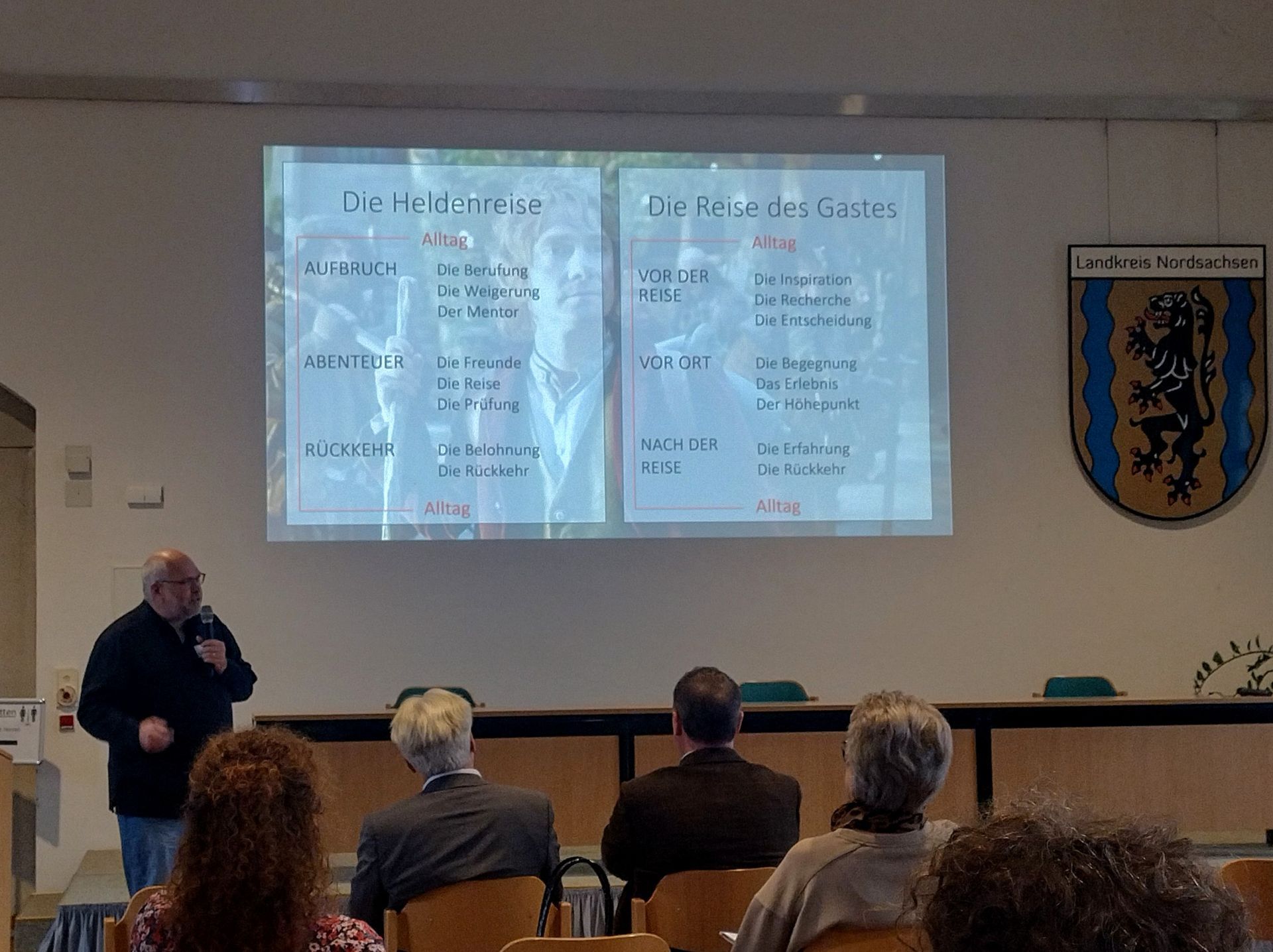 In der anschließenden Keynote „Inszenierung als Erlebnis – Wie Orte Geschichten erzählen“ erörterte Dr. Kai Pagenkopf, wie kulturelle Räume durch kreative Formate und narrative Ansätze neu erlebbar werden können. Die Best-Practice-Beispiele vom Biedermeierstrand in Hayna, von der Sächsischen Bläserphilharmonie und vom Mittelsächsischen Kultursommer zeigten die bereits gelebte und erfolgreiche Vernetzung von Kultur und Tourismus in der LEIPZIG REGION.